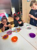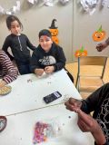 L'équipe d'animation avaient préparé plusieurs jeux et stands : projection d'un film sur le thème d'halloween, stands fabrication de masques, stands maquillage, stand accessoires bracelet et collier.